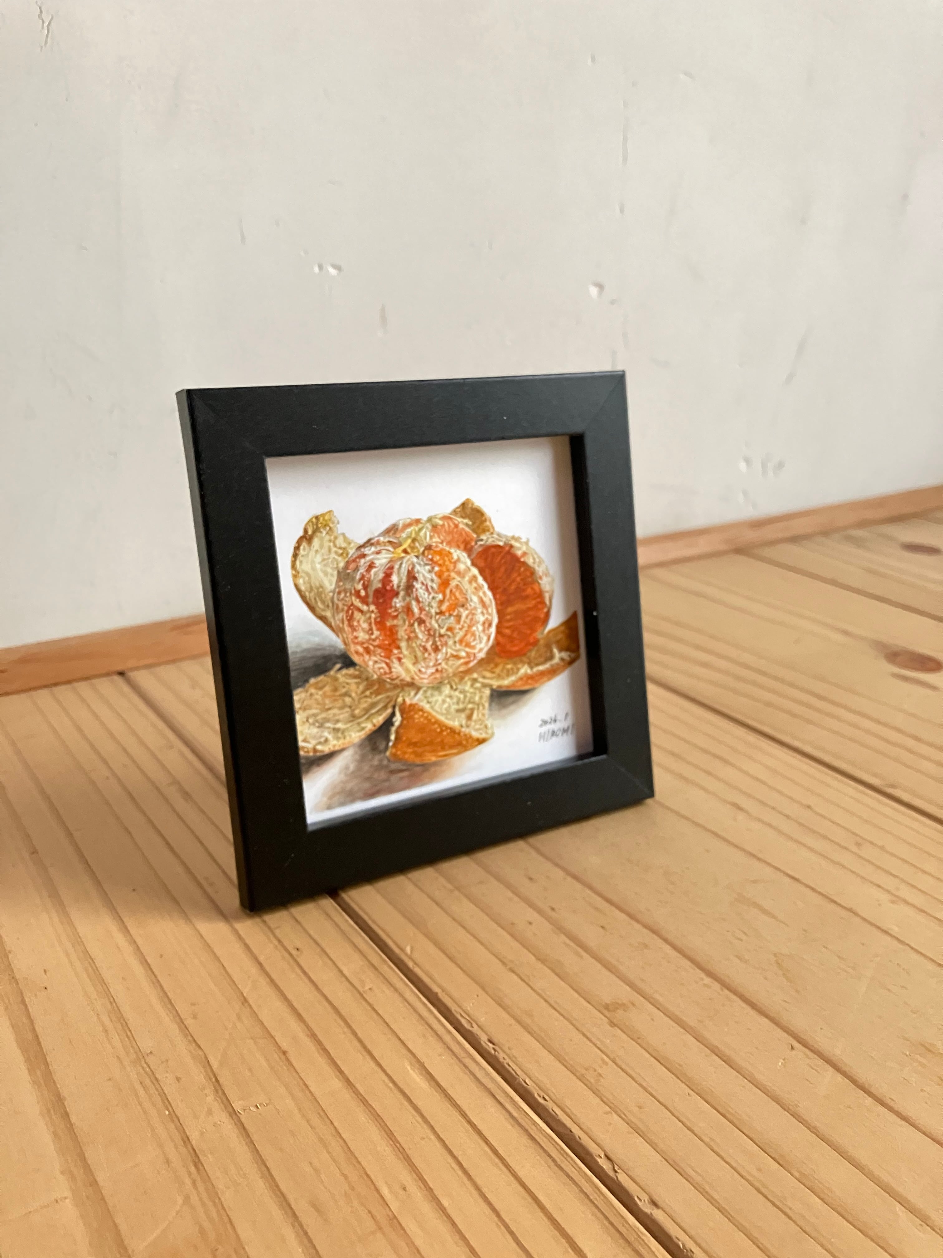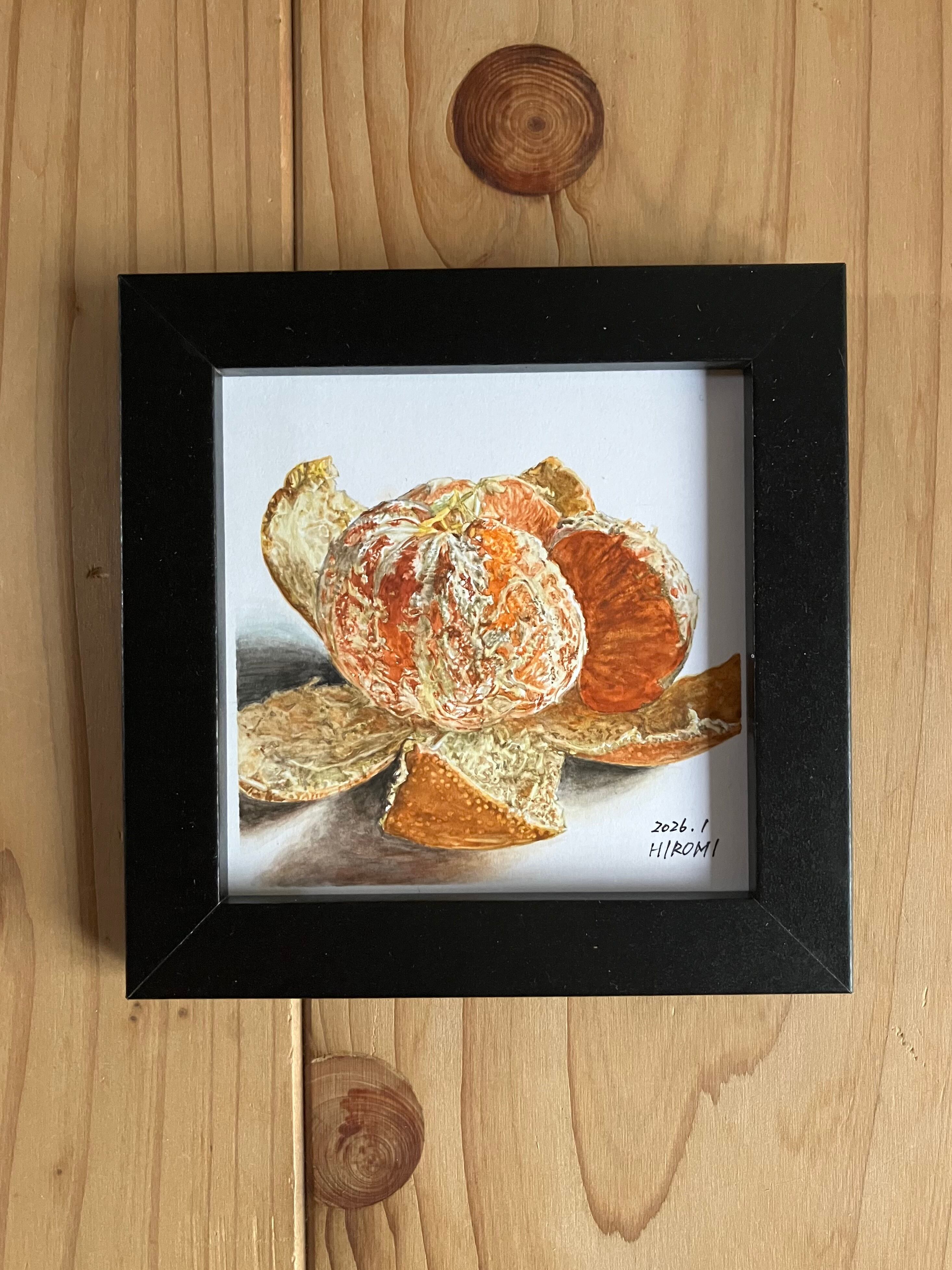 『水彩イラスト スクエアミニサイズ『みかん』手描き原画 フレーム付き』