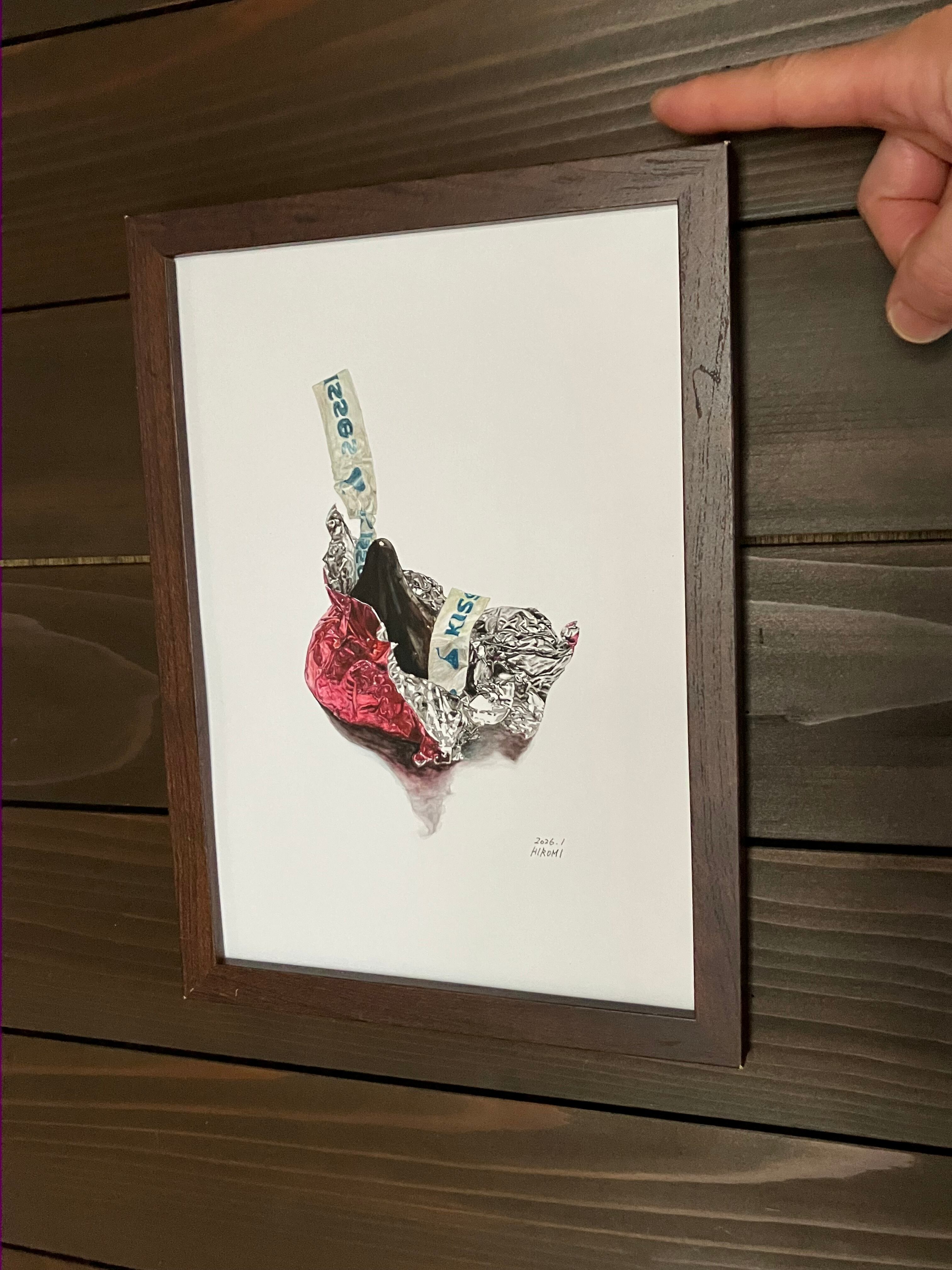 水彩イラストB5 『ビターチョコレート』手描き原画 フレーム付き