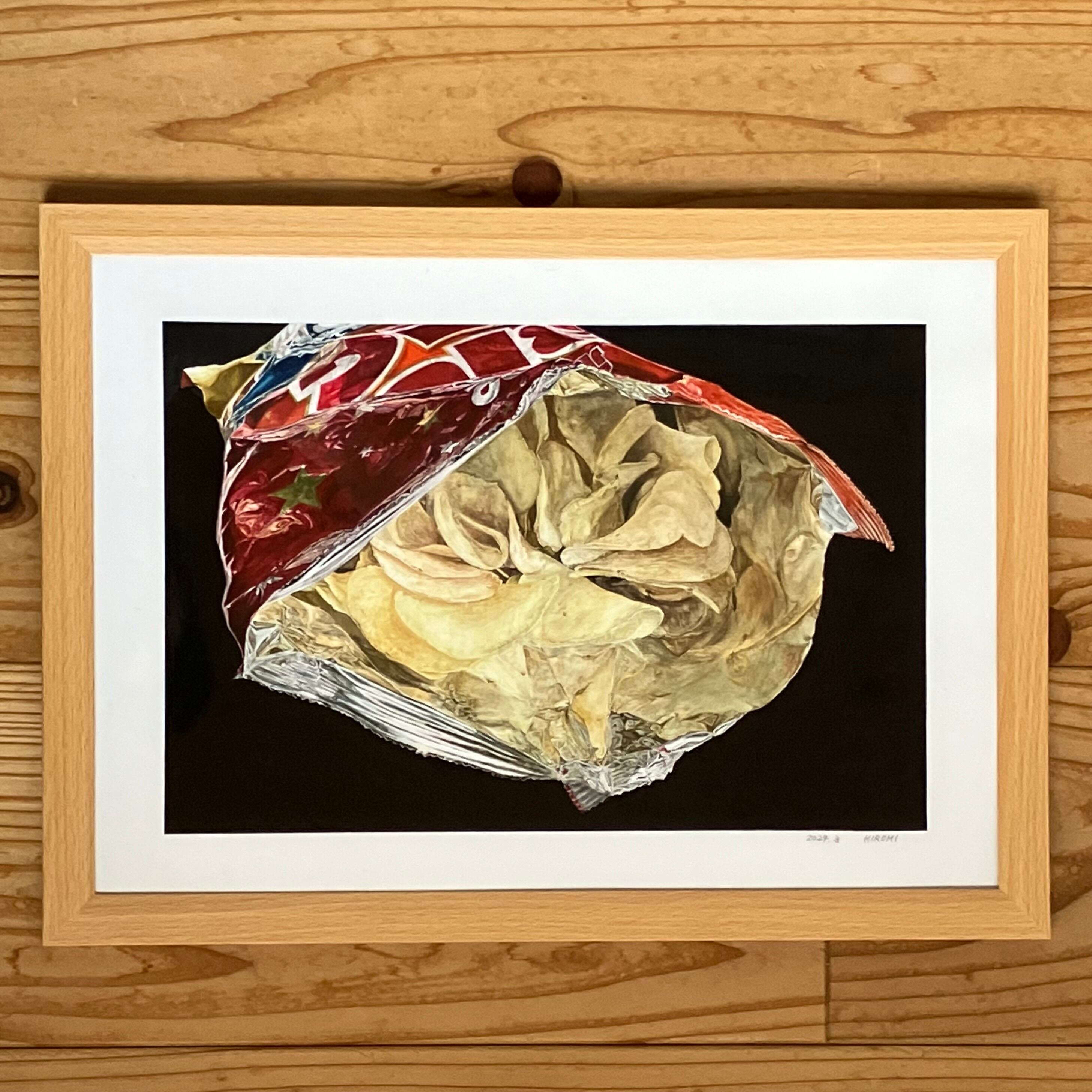 水彩イラストB4 『チップス』手描き原画 フレーム付き
