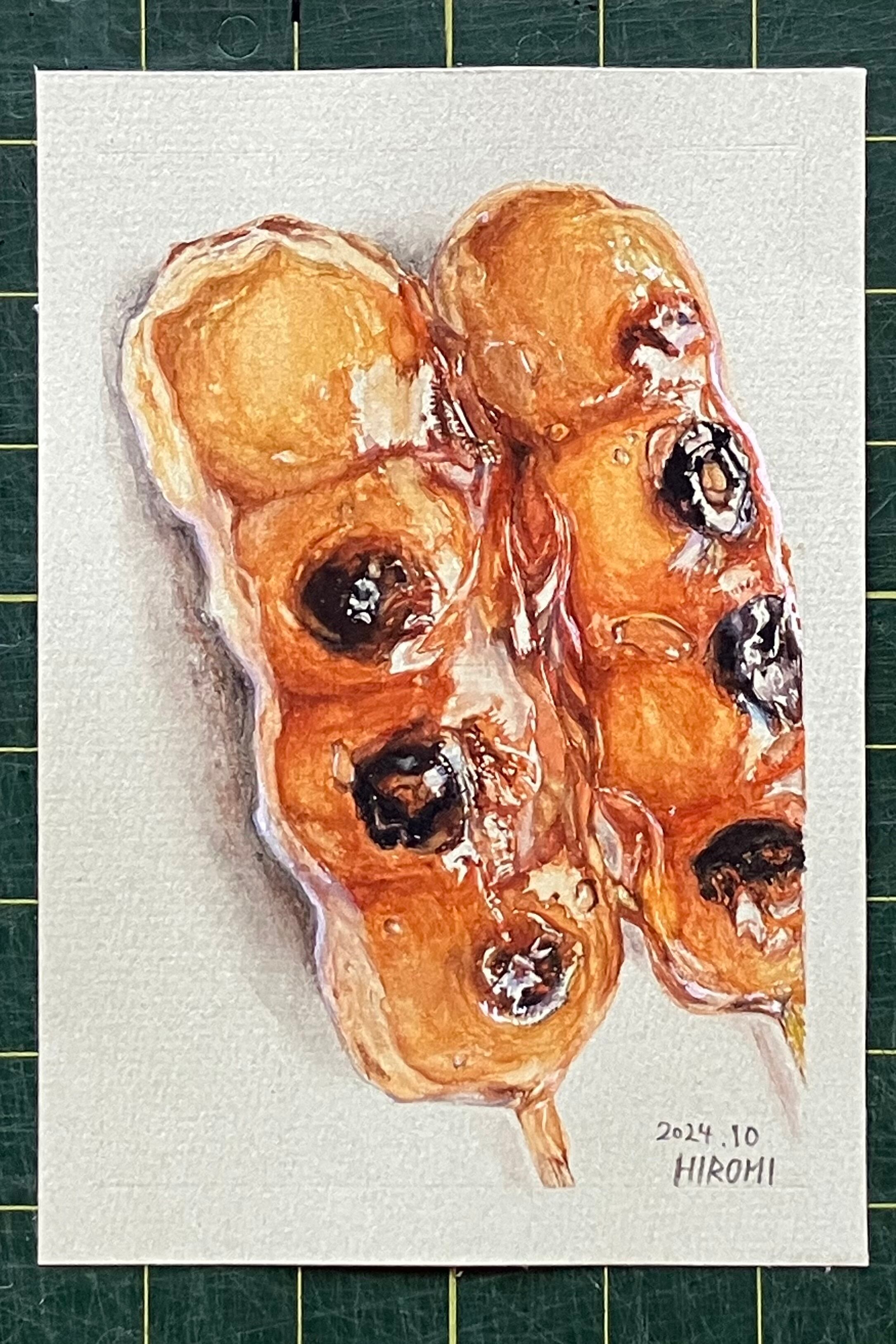 水彩イラスト 手のひらサイズ『みたらし団子』手描き原画 フレーム付き